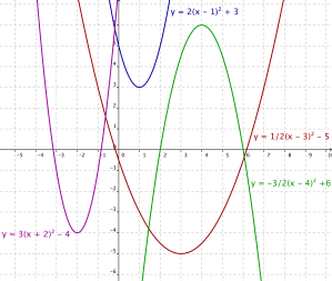 I carefully chose the values of ap, and q in y = a(x – p)² + q so that students could reasonably argue that any one of the functions could be picked as the odd one out. Because I am not looking for one particular answer, each student should be able to confidently answer the question and contribute to a mathematical discussion. Planning disagreement is key; it means students will have to justify their mathematical thinking.
