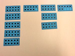 In our videos, we make use of virtual manipulatives–or virtual virtual manipulatives?–like pattern blocks, colour tiles, counters, multi-link cubes, base ten blocks, algebra tiles, tangram-like puzzles, Solo cups and paper clips, etc. We employ other pictorial representations such as hundred charts, decimal/percent grids, number lines, double number lines, factor trees, factor rainbows, tables of equivalent ratios, graphs, etc.